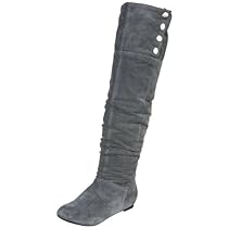 Chinese Laundry also makes a very similar boot called "Tripin over the knee" boot. The other (Tripin) boot is NOT lined and therefore slouches down because it is just one layer of suede and has no lining. The Tripin boot has matching snaps (same color as the boot). The tripin boot is the one I returned.